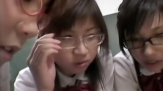 Lil' CFNM Japanese schoolgirl love sharing cock