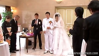 Japanese bride gets nailed by a few studs after the ceremony