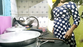 Indian bhabhi cooking in kitchen and pulverizing brother-in-law
