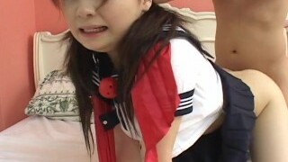 Cute Chinese teen Tomoyo Isumi is fucked and creampied by one elder man
