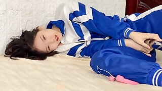 Torrid Korean nymphomaniac in uniform gets her pussy stimulated