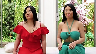 Bubble butt Asian girls Suki and Miki have a FFM three-way