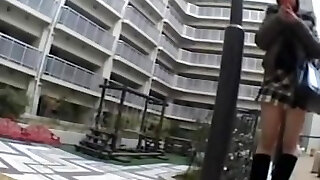 Leggy Asian school chick is flashing her fuck-fest-starved teen pussy upskirt