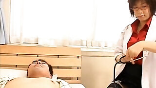 Japanese Medic In Glasses Uses Strap on
