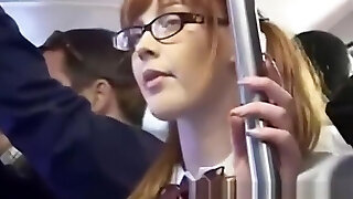 Horny girl fingerfucked to climax on bus